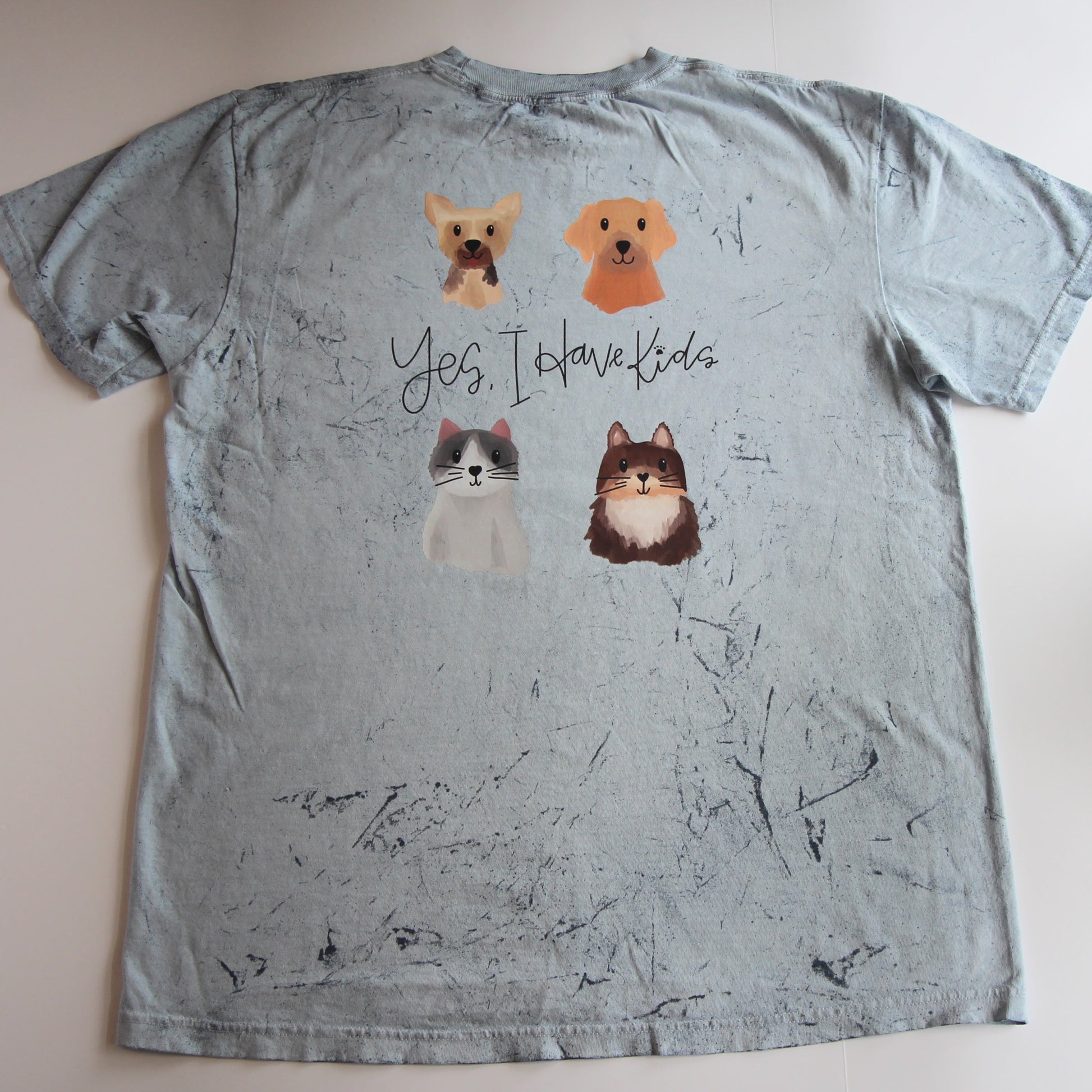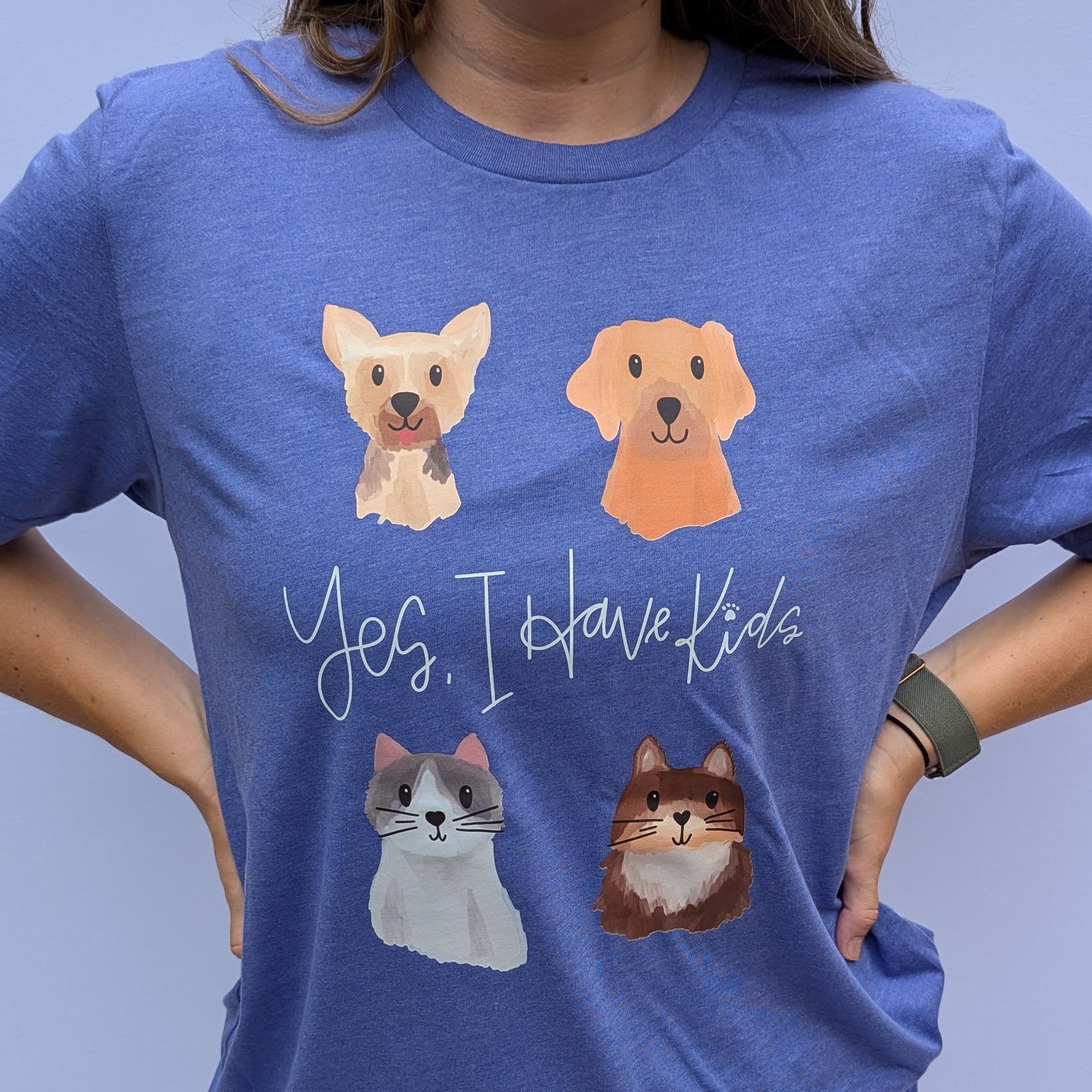 “Pet Mom” is offered in two options. Comfort Colors, Ocean Colorblast or Bella Canvas, Lapis. The design can be printed on the front or back of the shirt depending on your preference. If a custom size or color is needed you can reach out to me via email macy.loyalteesllc@gmail.com to go over your options.